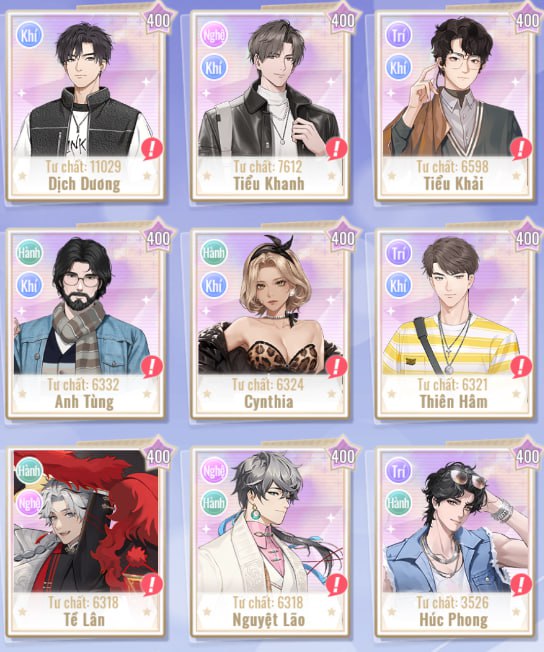 ♦ Các thuộc tính Đồng Hành gồm có: Khí Thế - Hành Động - Trí Lực - Tài Nghệ.